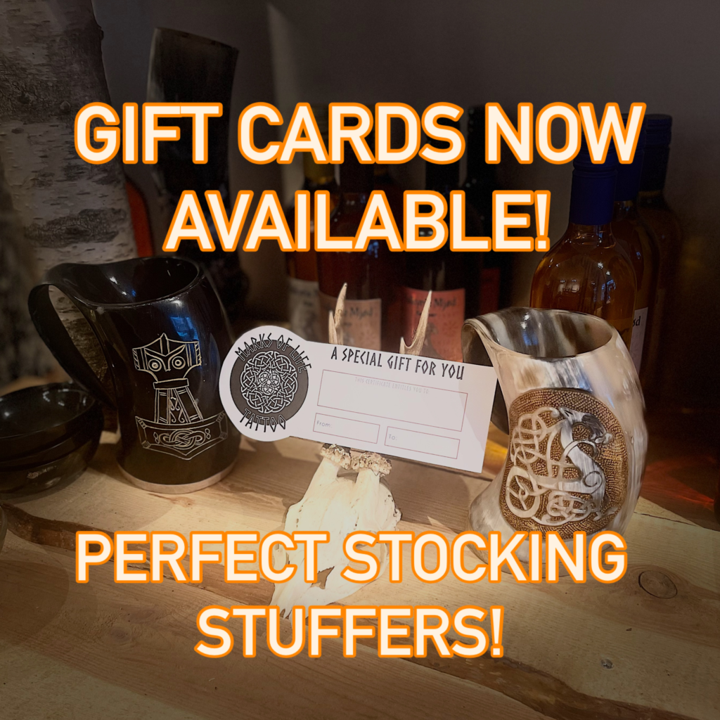 We are proud to announce that we have some amazing products from drinking horns, jewelry, wood carvings, leather craft, and much more produced by none other than Nordlys Viking. We are even able to sell delicious mead from Valkyrie Mead to put in these amazing Viking drinking horns.